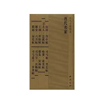 內容簡介: 山濤,字巨源,河內懷人,性好老莊,每隱身自晦。與嵇康、呂安友善。後遇阮籍,為竹林之交,著忘言之契。武帝時為侍中、司徒。善正書。《晉書》卷四十三有傳。唐竇《術書賦》雲..[巨源正書,樸略仍余。染翰忘筌,寄情得魚。若博客來網路書店博客來書店拔賢草澤,匿銳茅廬]。有《侍中帖》傳世,行楷,八行,七十九字。《淳化秘閣法帖》、《大觀帖》、《絳帖》、《寶賢堂集古法帖》、《懋勤殿法帖》等均有傳。凡五行,四十六字。《淳化秘閣法帖》、《大觀貼》、《絳帖》、《寶賢堂集古法帖》、《玉煙堂帖》、《懋勤殿法帖》等均有傳。