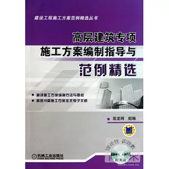 收入的10篇高層建築專項施工方案實例是從上百篇實例中精選出來的,代表了我國現階段高層建築工程施工水平,這些選自全國各地的高層建築專項施工方案已經由實踐證明了是技術上先進、經濟上合理的,對類似工程有著很大的借鑒和參考價值。博客來博客來書店