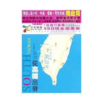 內容簡介: 博客來網路書店博客來 介紹了高雄市、高雄縣、南投縣、雲林縣、嘉義縣、台南縣、台南市、屏東縣、台東縣、花蓮縣、宜蘭縣、澎湖縣、金門縣、連江縣的特色之旅、當地美味、人氣餐廳、時尚Shopping.